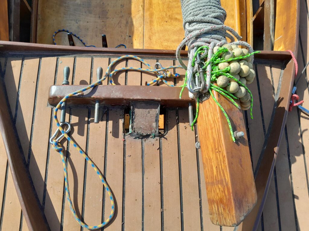 Bei so tatkräftigen Helfern wurde es auch fast zur Nebensache, dass beim Stellen des Mastes der Mastsockel wegbrach – nach zwei Stunden Dream-Teamwork war unsere BM-Jolle wieder wie neu.